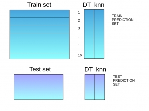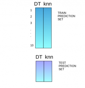 Steps 2 to 4 are repeated for another base model (say knn) resulting in another set of predictions for the train set and test set.